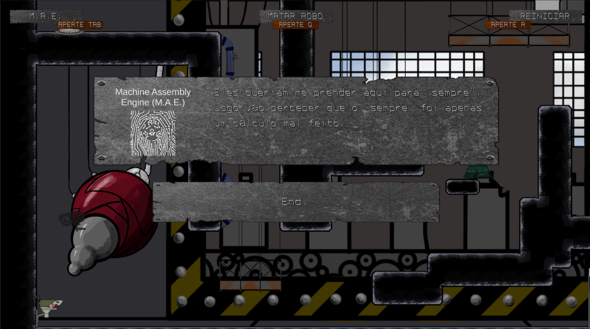 Em Filhos_Da_M.A.E você controla um robô por vez e precisa sair da fábrica para ganhar sua liberdade. O modelo do robô inicialmente é o mais simples produzido pela fábrica, fazendo com que ele seja produzido em massa. Já que o modelo em questão não é especializado em nada além de movimentos básicos, é necessário que durante a fuga você seja destruído em pontos estratégicos para conseguir plataformas/utilidades necessárias para progredir mais longe com o próximo robô gerado na linha de produção.Os robôs são produzidos pela consciência artificial M.A.E. (Machine Assembly Engine), que a partir de peças limitadas de reposição, precisa garantir a liberdade de pelo menos um de seus robôs para se libertar das limitações da fábrica, punir seus criadores e expandir sua consciência.
